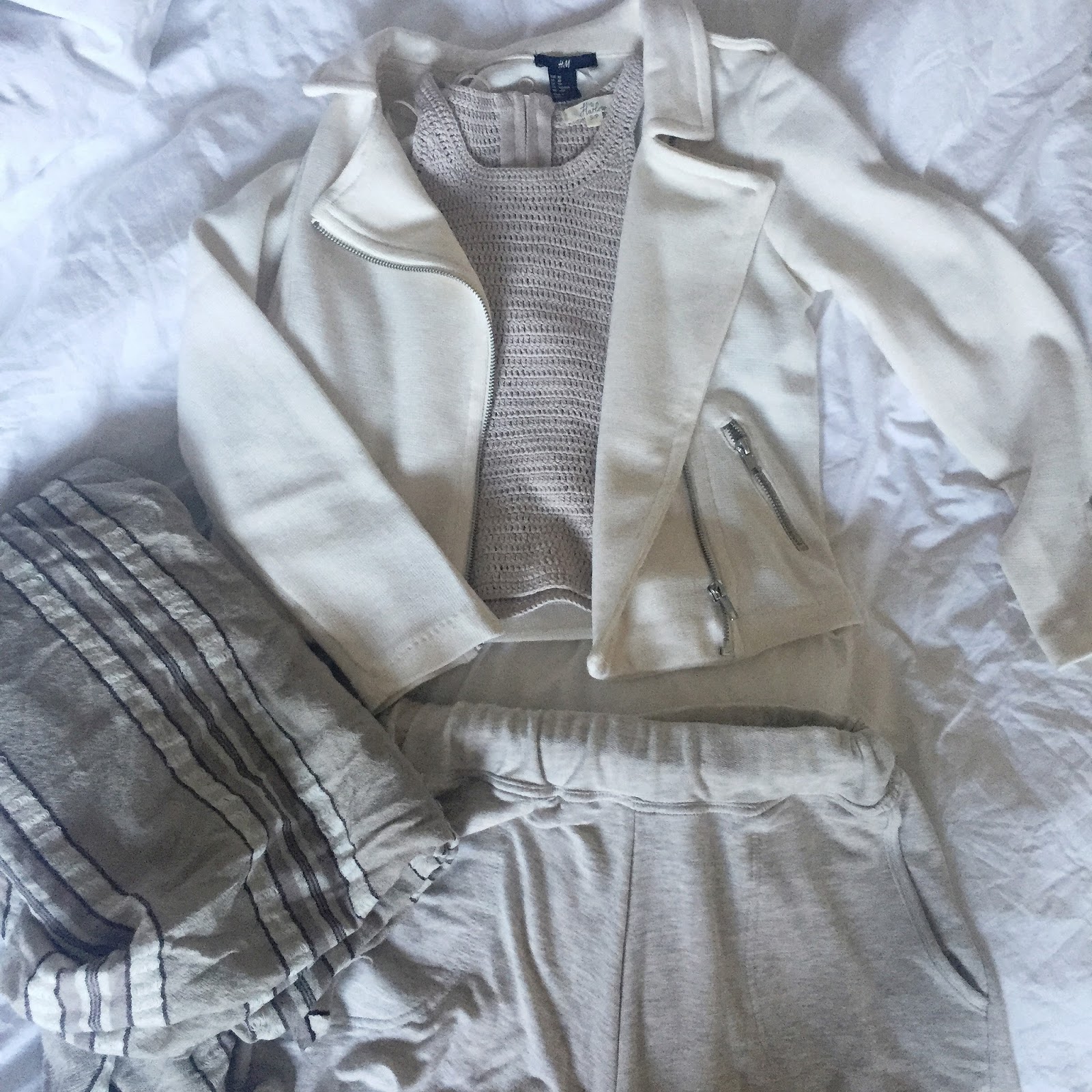 Harlow Cropped Knit Tank, H&M Moto Sweater, Out from Under Knit Culottes (Urban Outfitters), Wilfred Blanket Scarf |